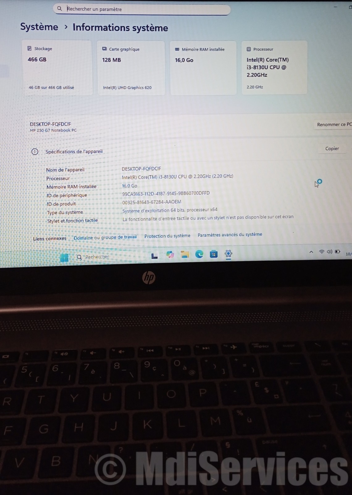Ordinateur de 2020, à usage bureautique, reconditionné par nos soins : nettoyage/dépoussiérage intérieur, changement de pâte thermique du processeur, augmentation mémoire de 4Go à 16Go, remplacement du disque dur original mécanique par un numérique M2.